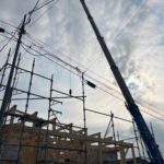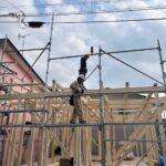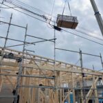 「棟木」を取り付ける工事で