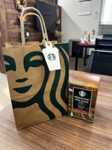 (お菓子を受け取ってお澄まし社長をパシャリ)